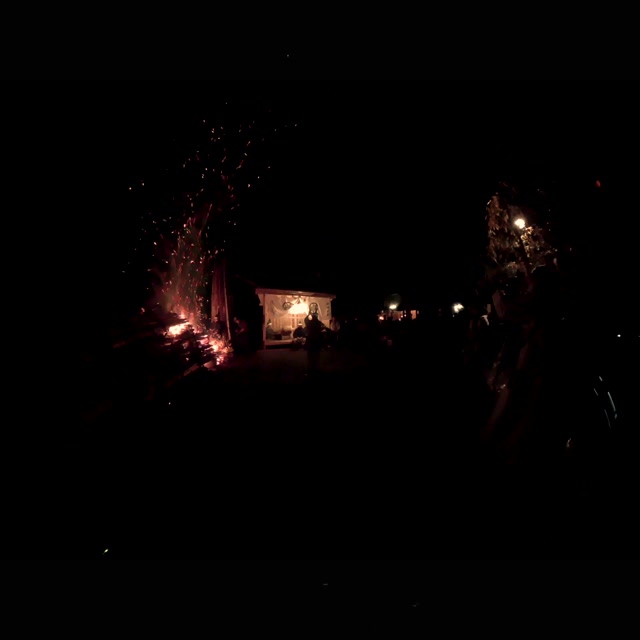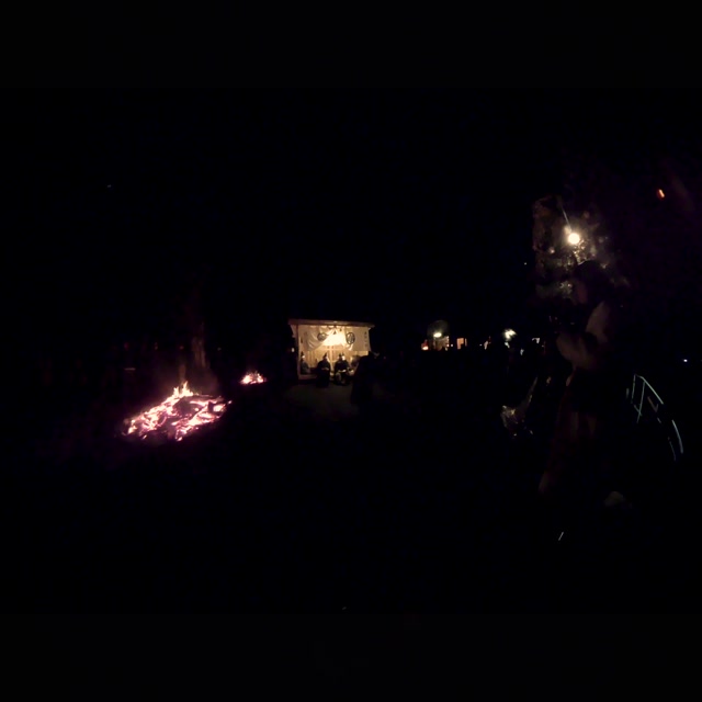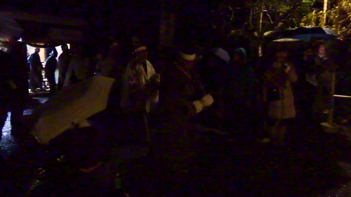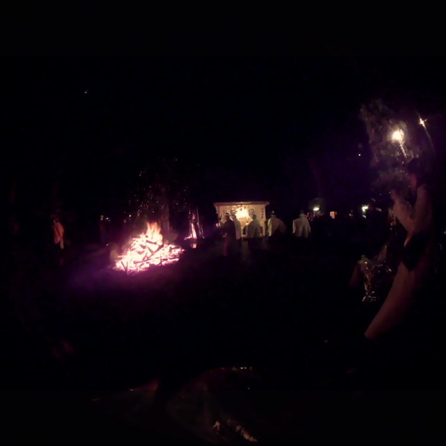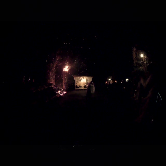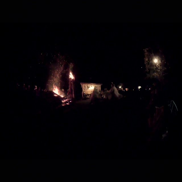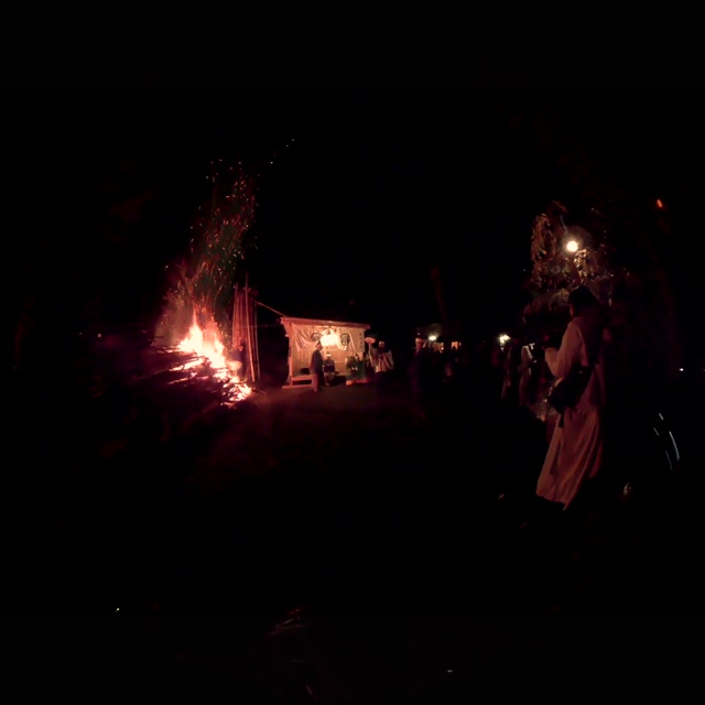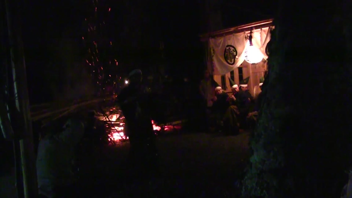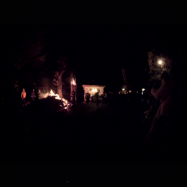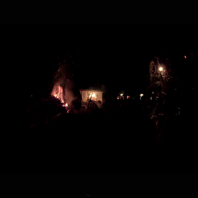 内陣の火を灯した御舟を、能衆全員で引いて「池島タイ」に灯し、観音様をタイにお連れする。