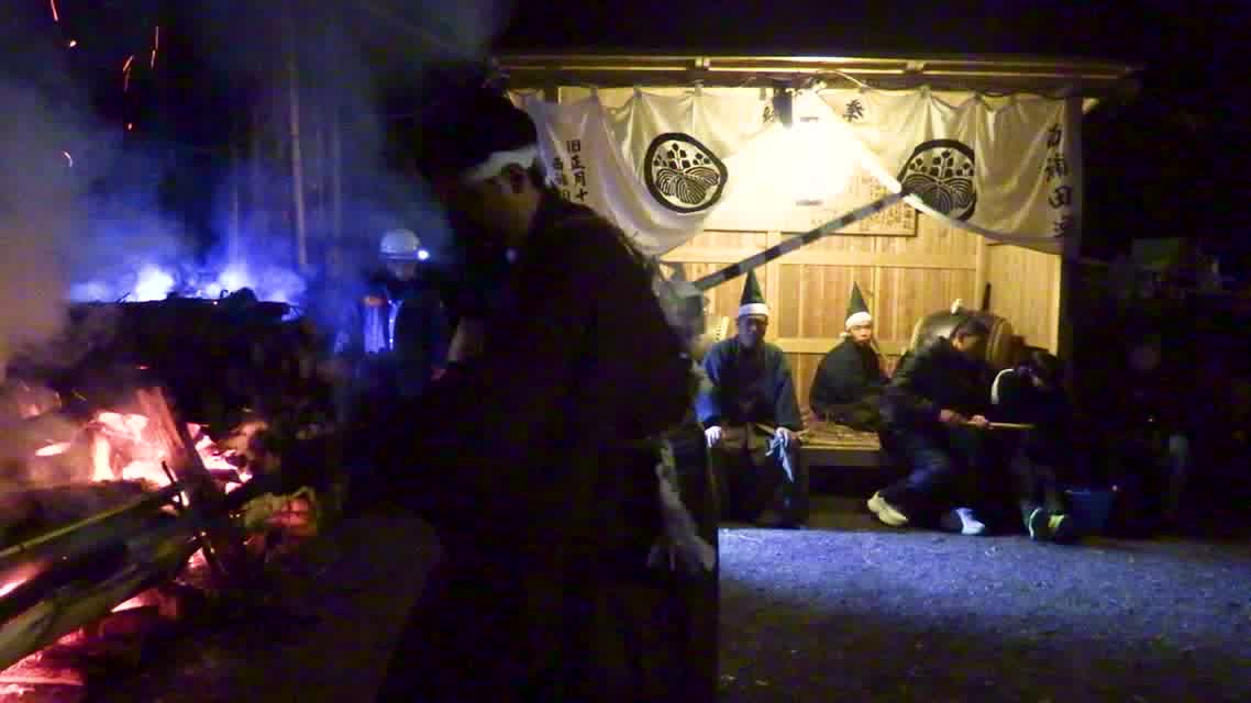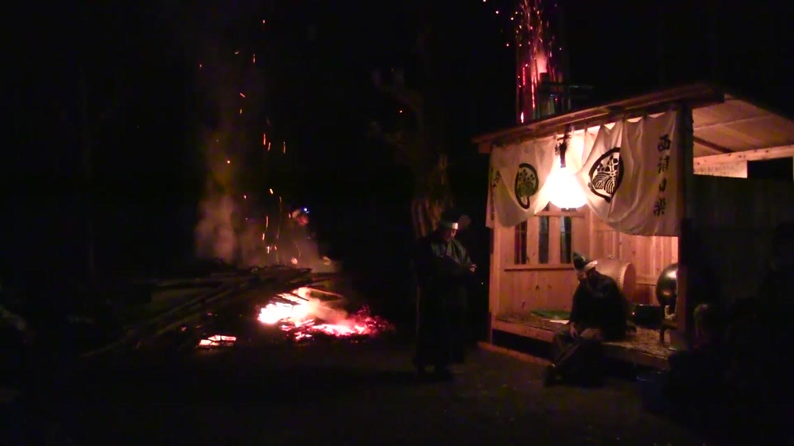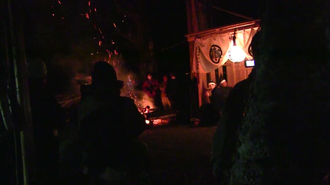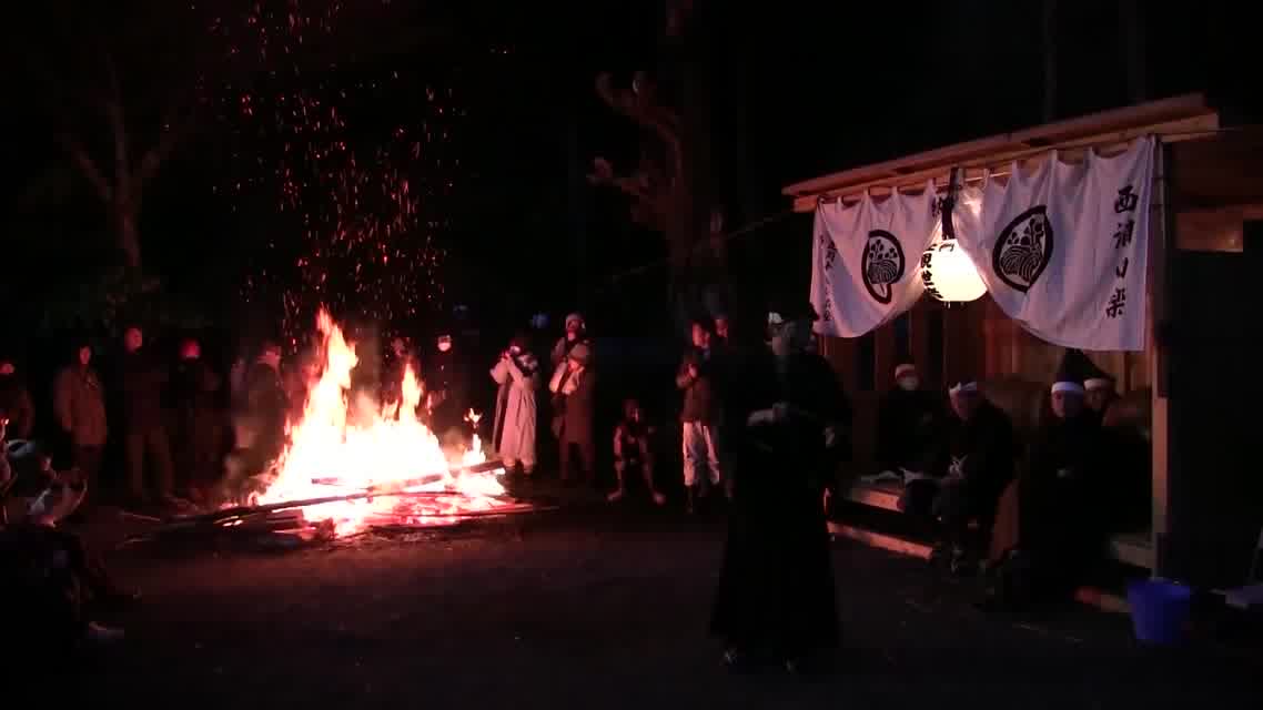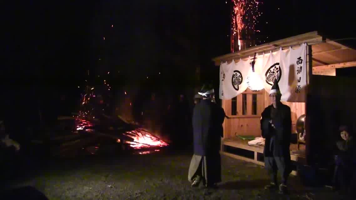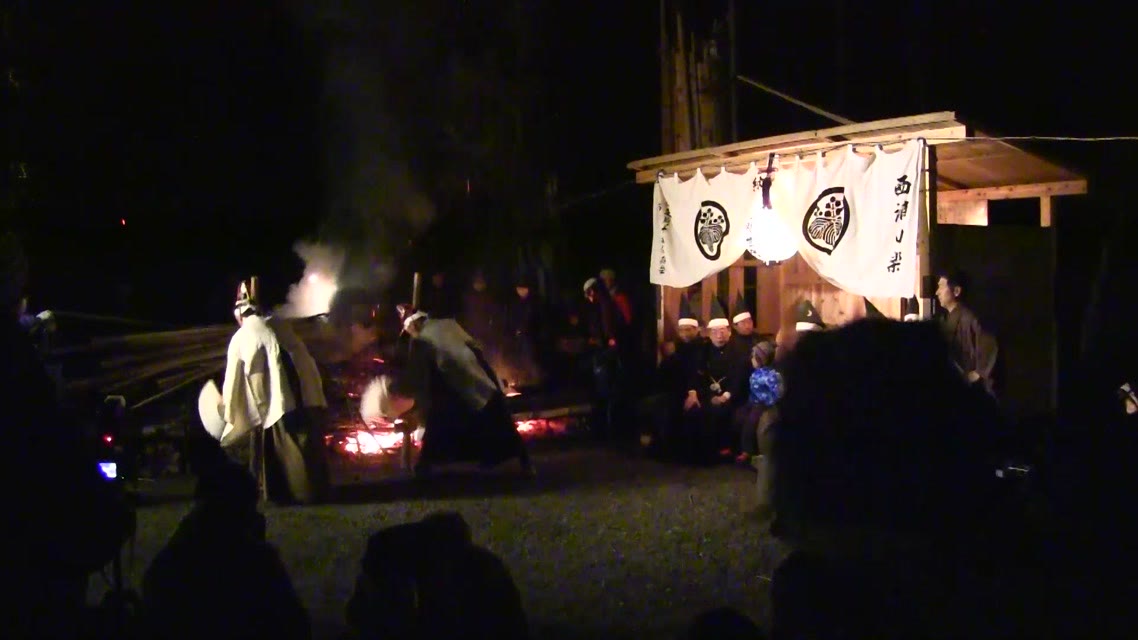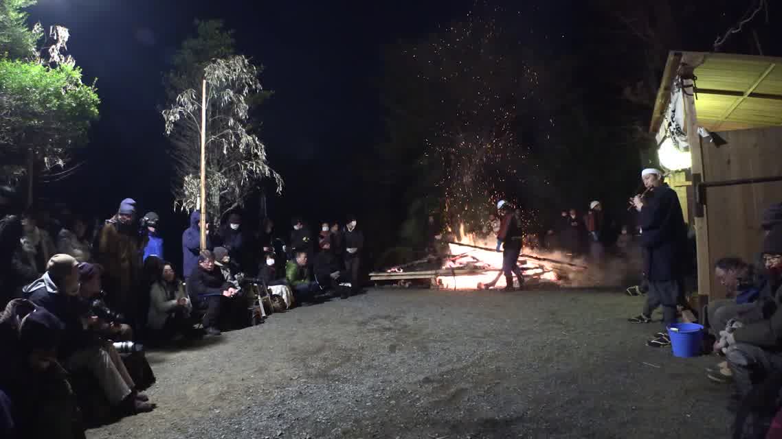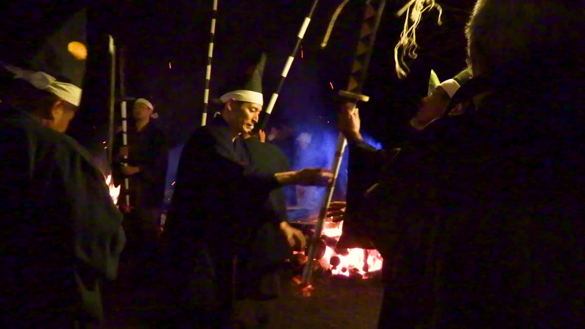 次の「舟渡し」に使う灯となる、庭火から抜き出したほだ(薪)を恵方に向けて煽る。