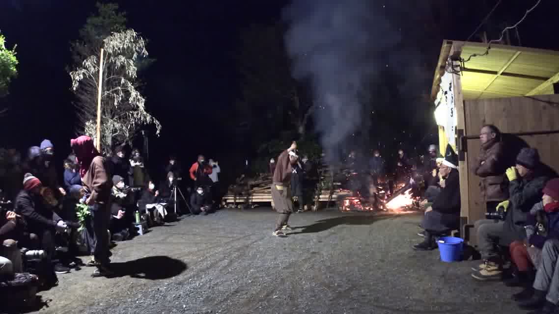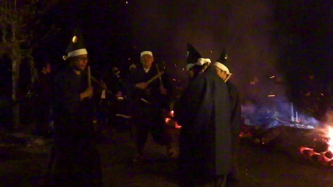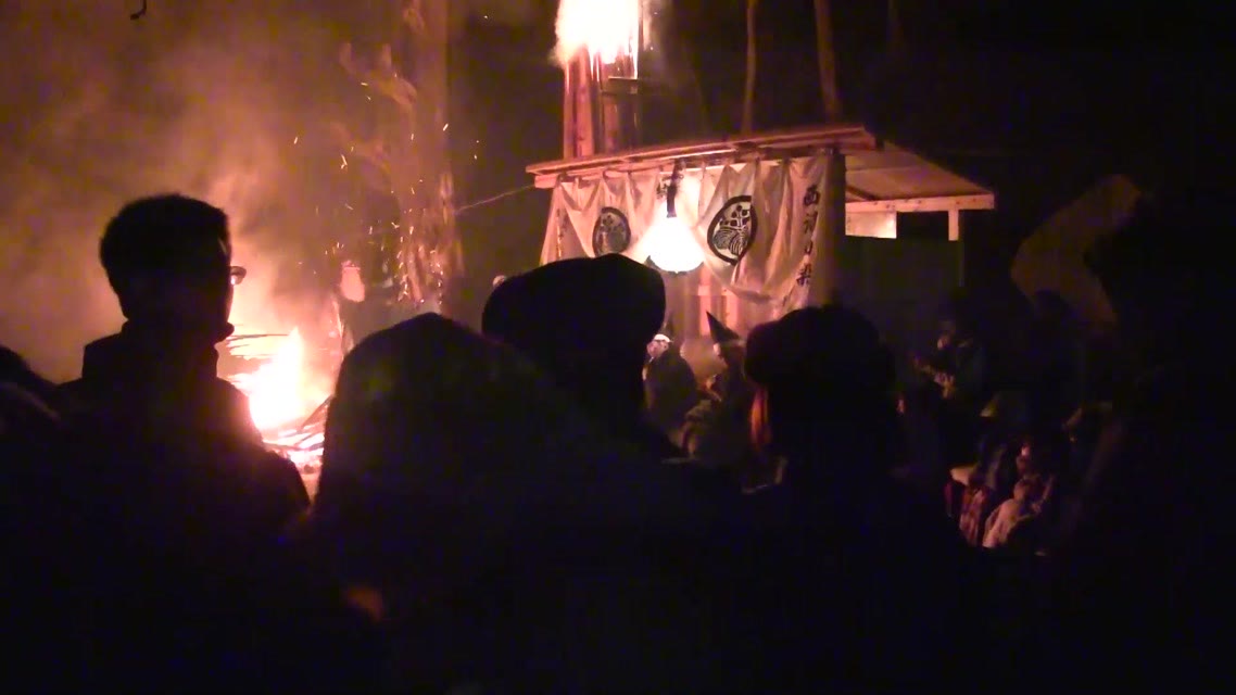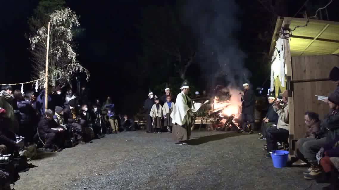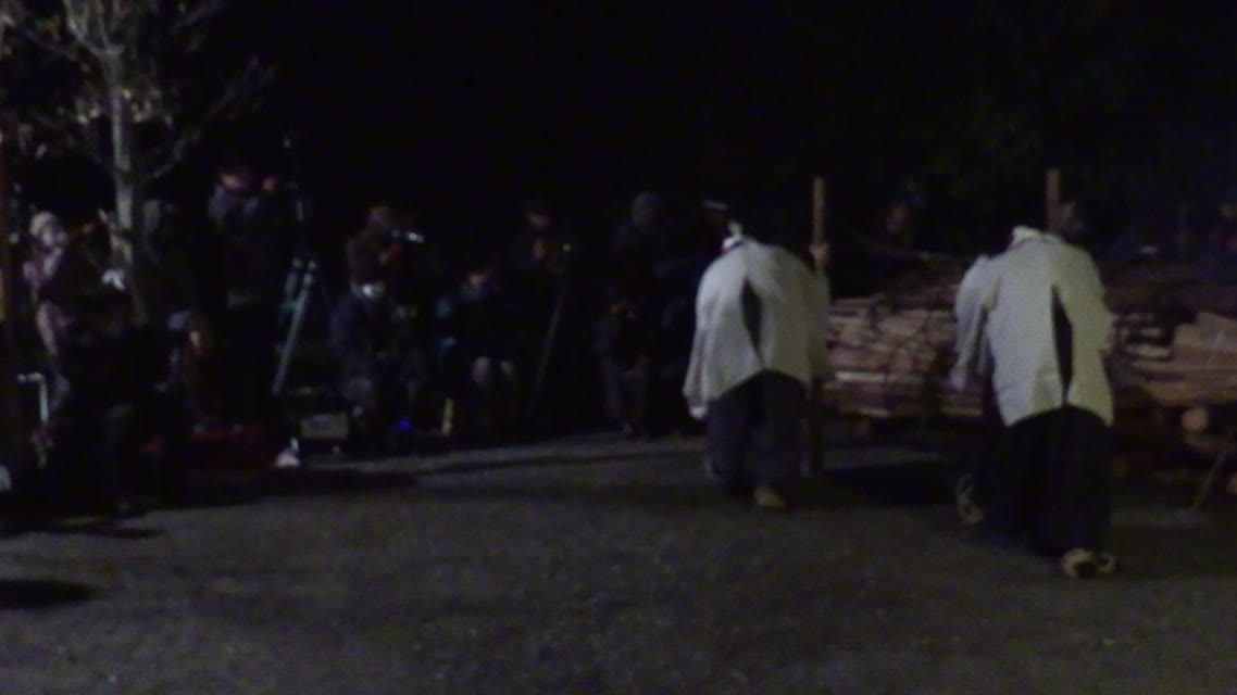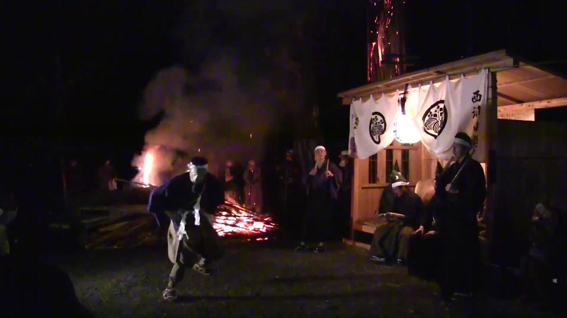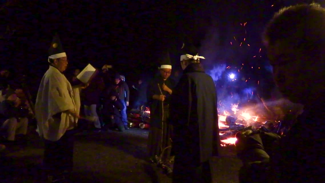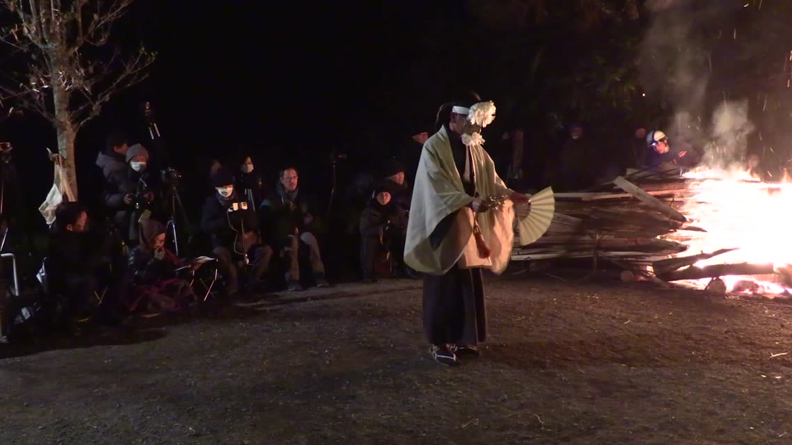 次の「舟渡し」に使う灯となる、庭火から抜き出したほだ(薪)を恵方に向けて煽る。