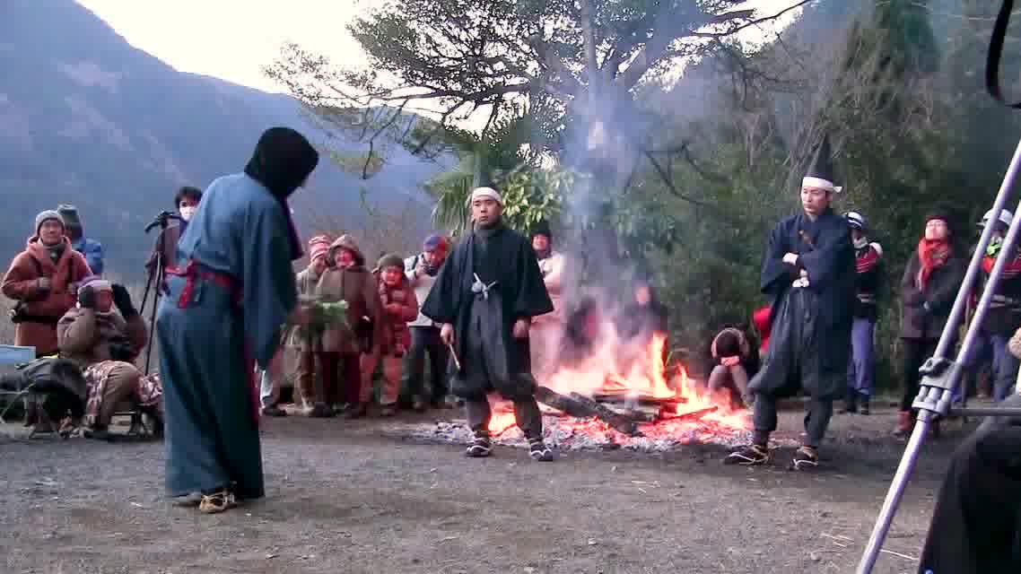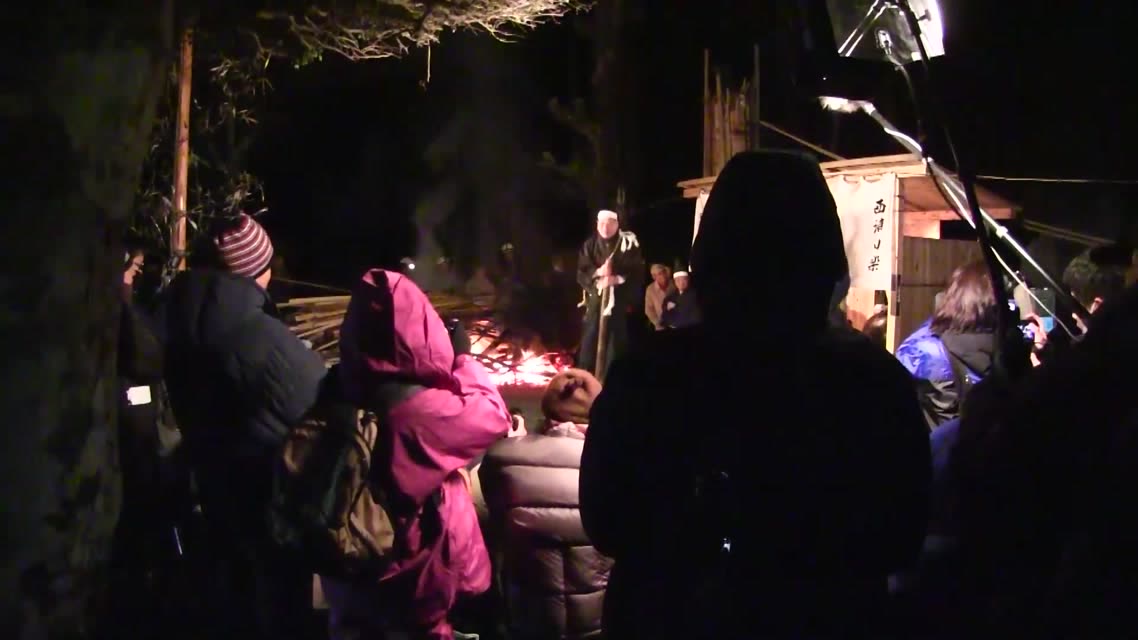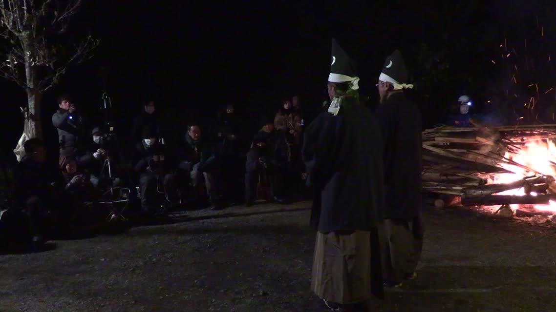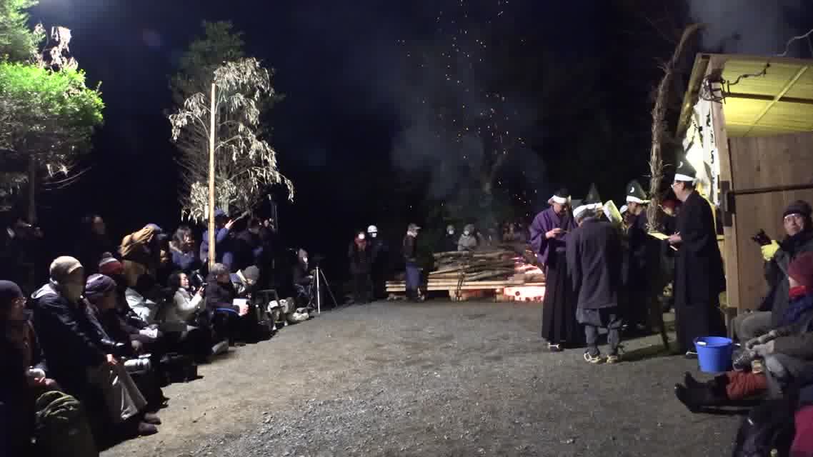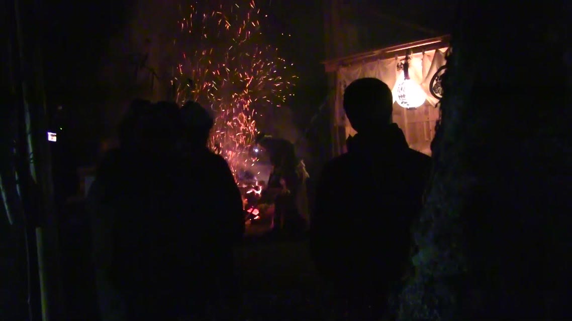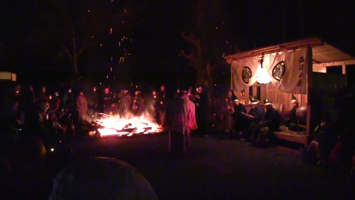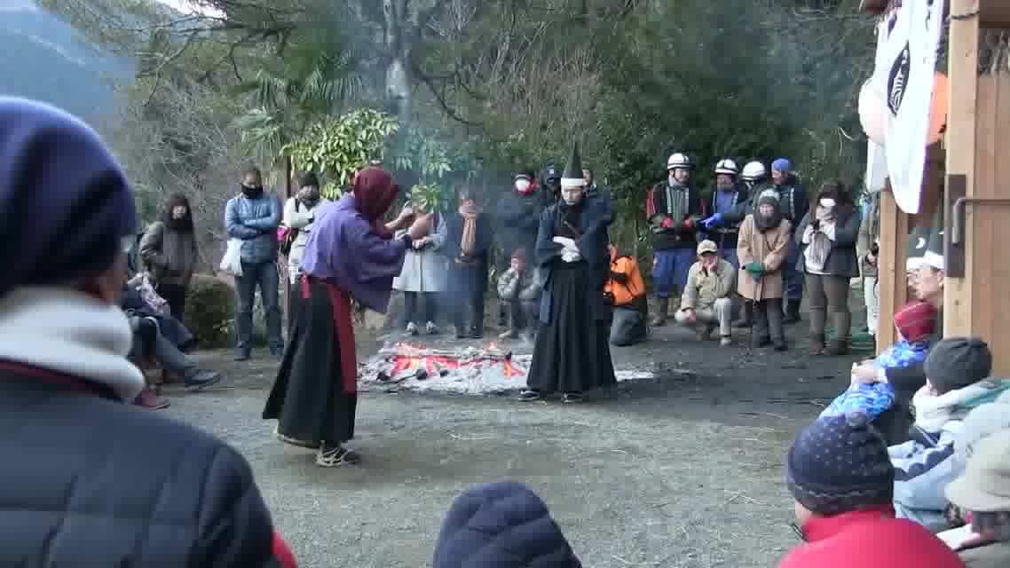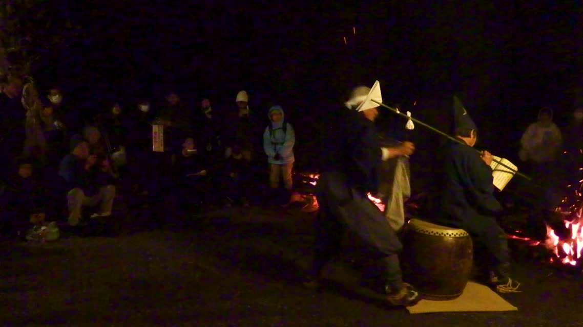 次の「舟渡し」に使う灯となる、庭火から抜き出したほだ(薪)を恵方に向けて煽る。