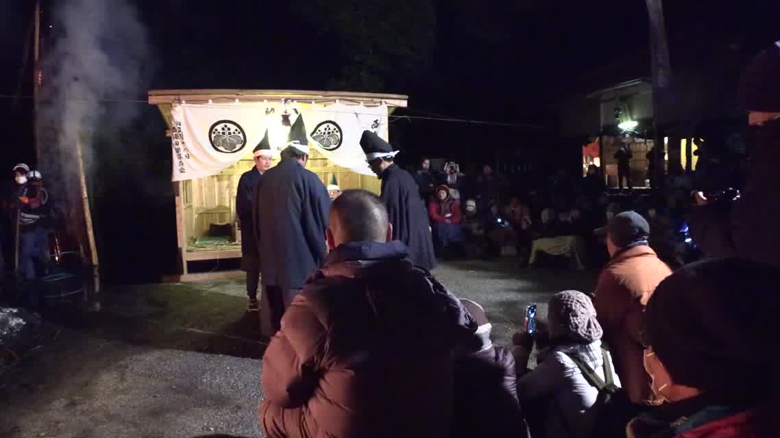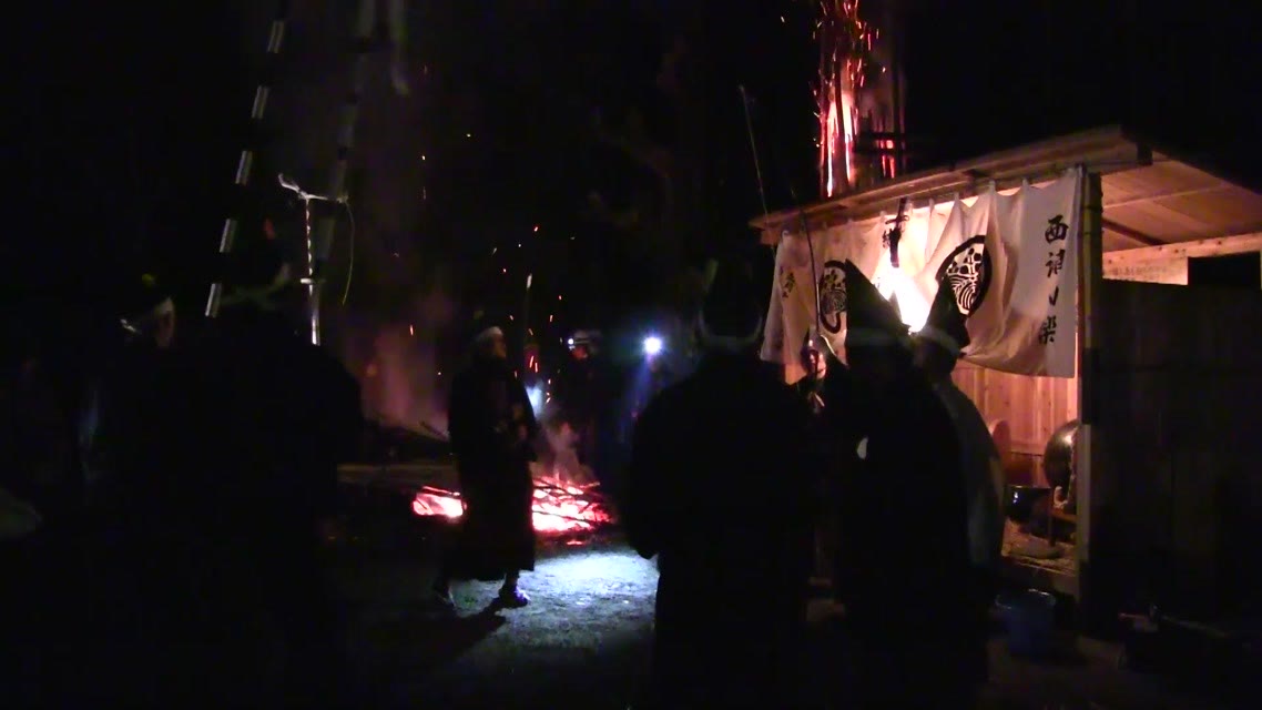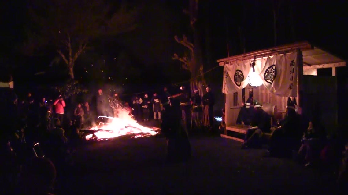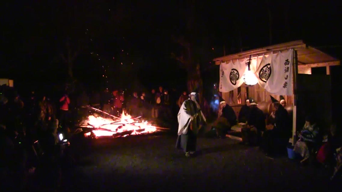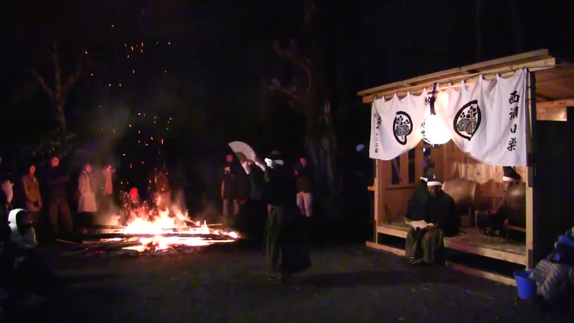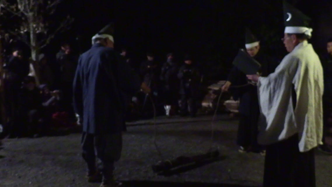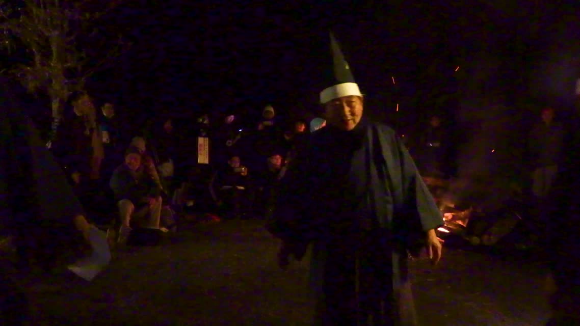 次の「舟渡し」に使う灯となる、庭火から抜き出したほだ(薪)を恵方に向けて煽る。