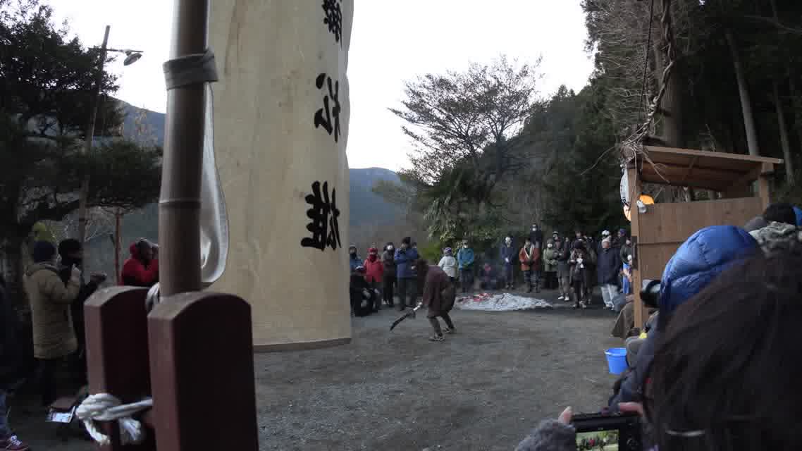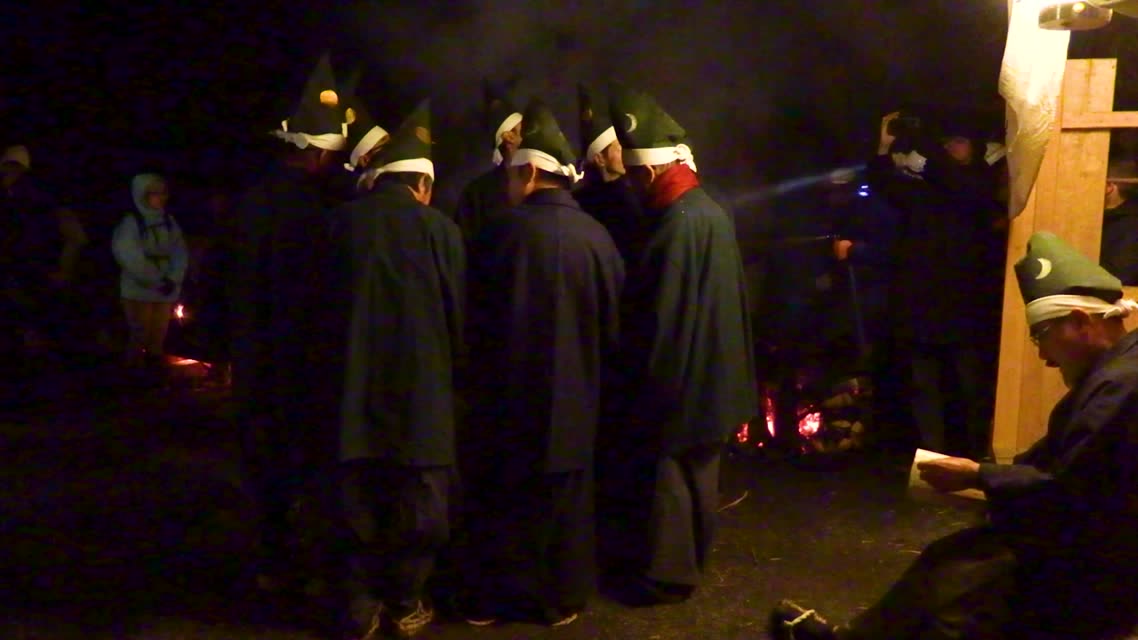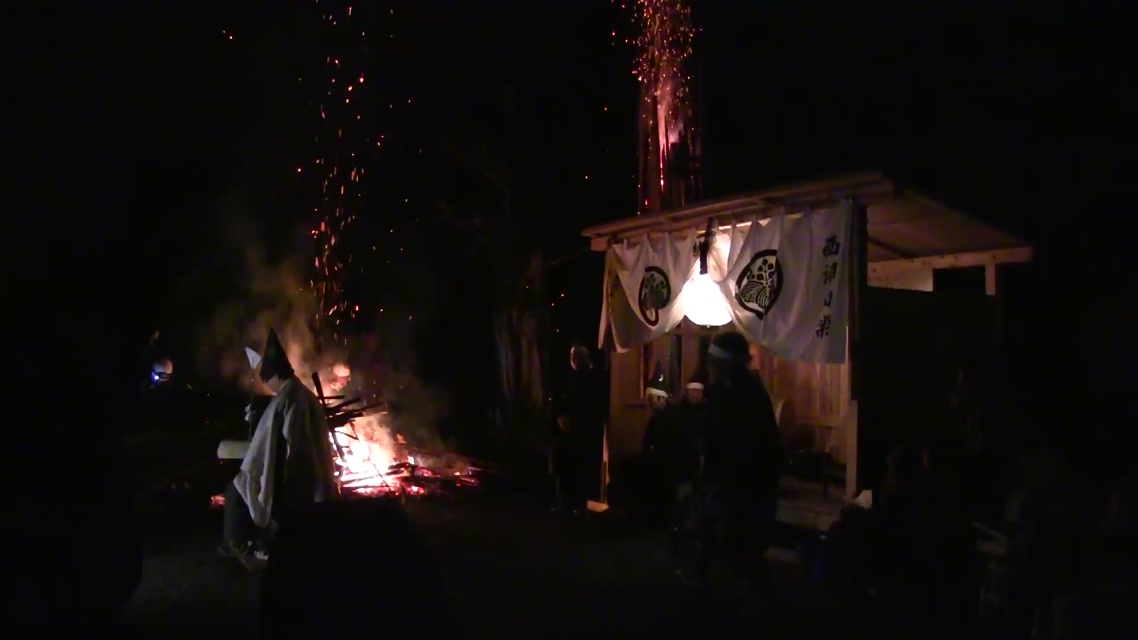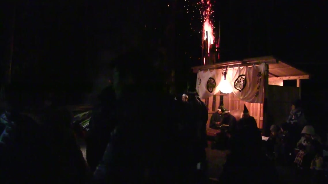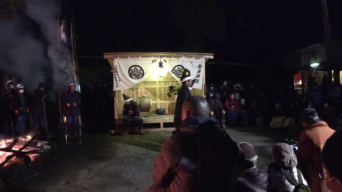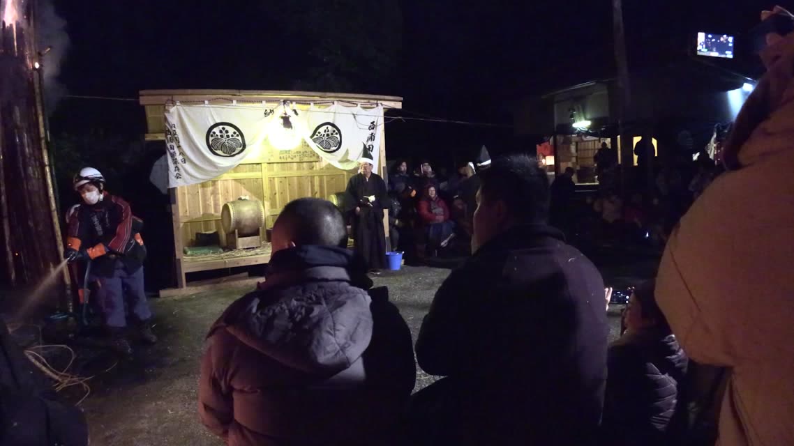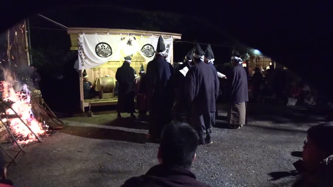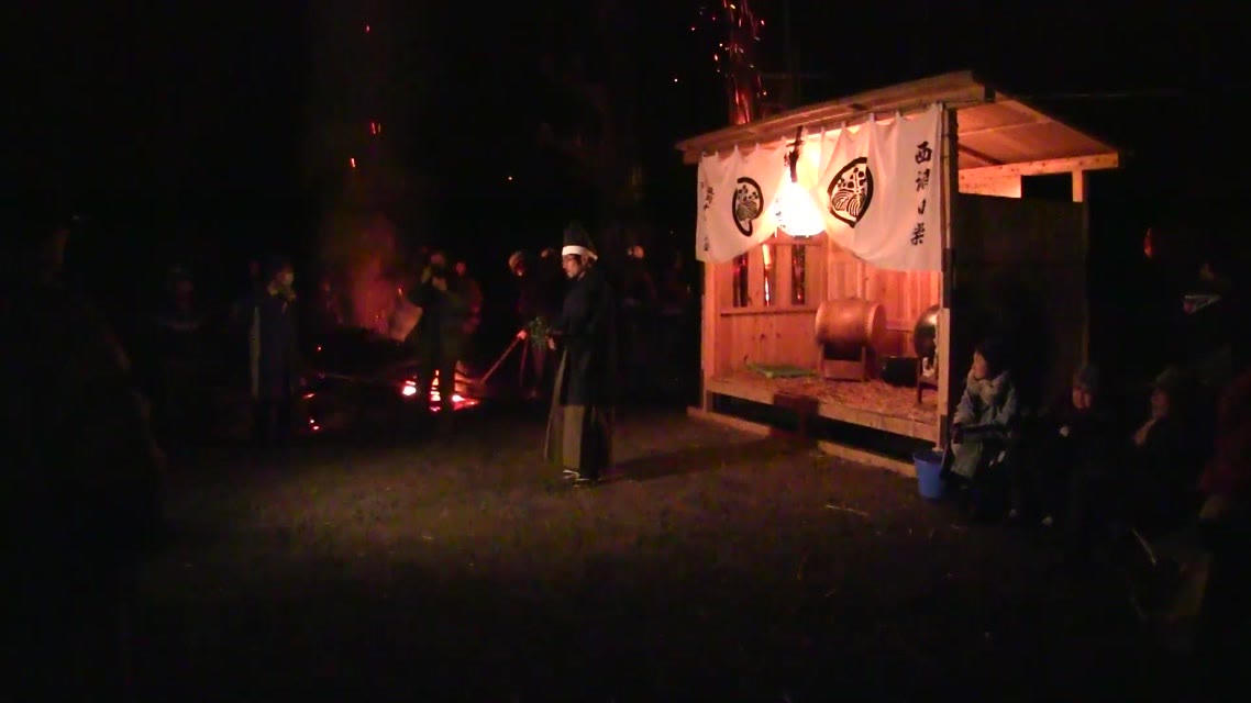 次の「舟渡し」に使う灯となる、庭火から抜き出したほだ(薪)を恵方に向けて煽る。