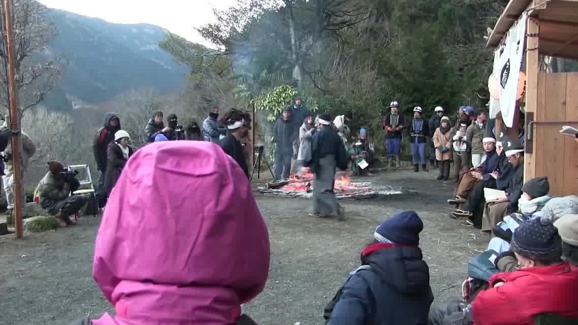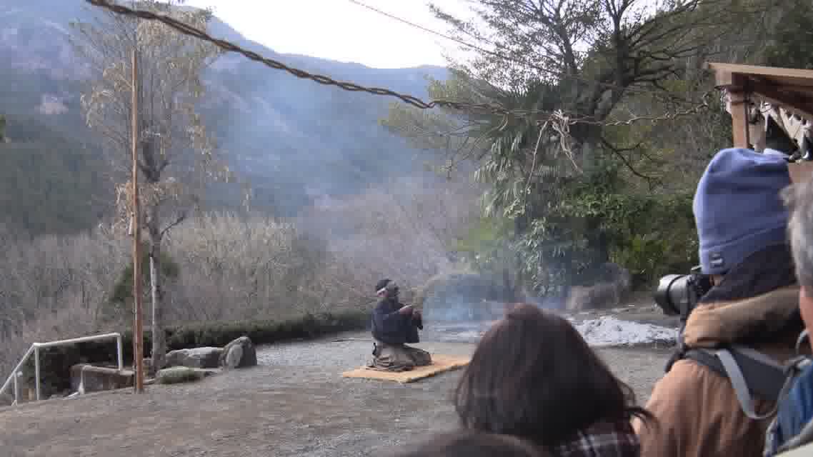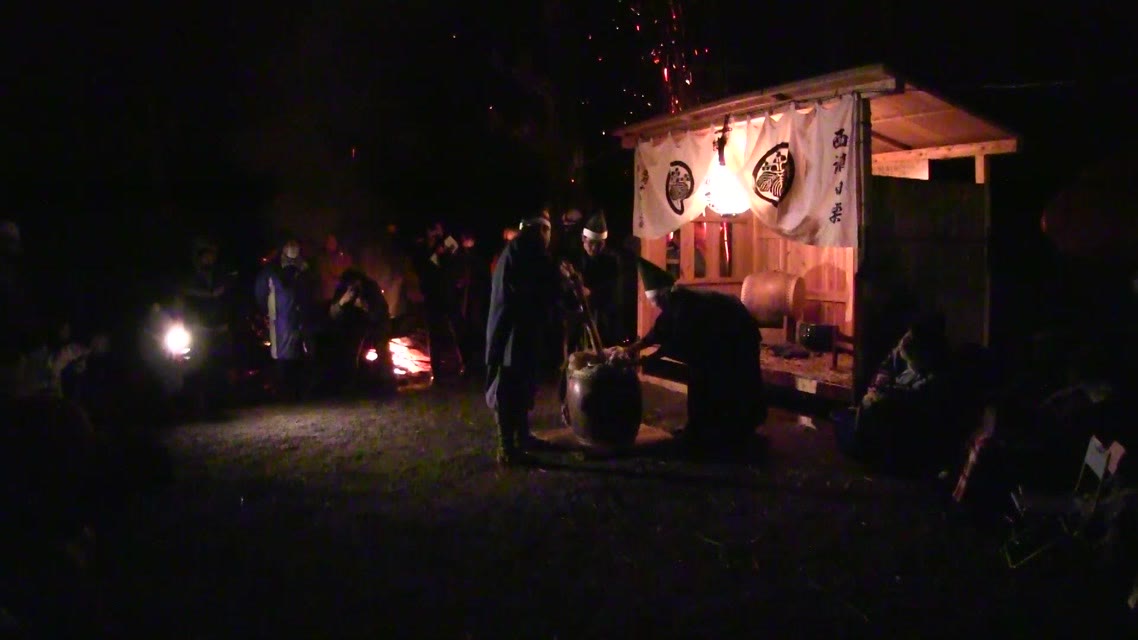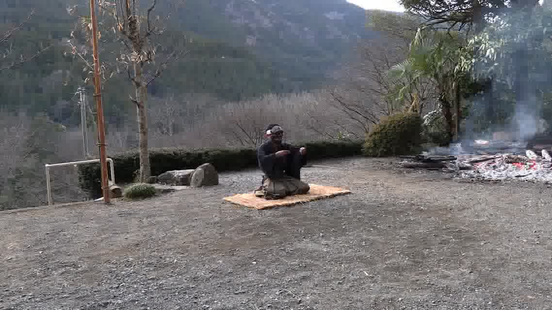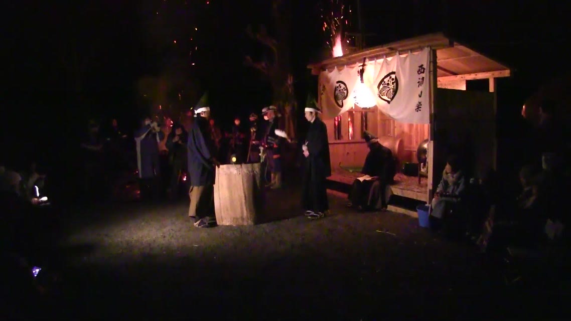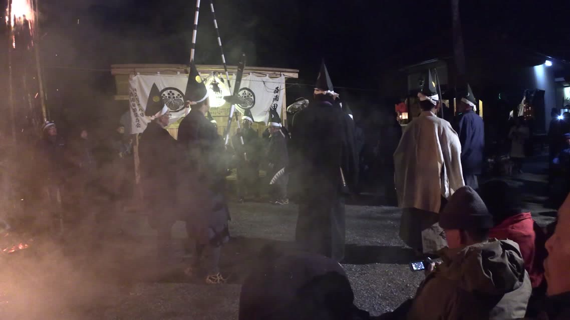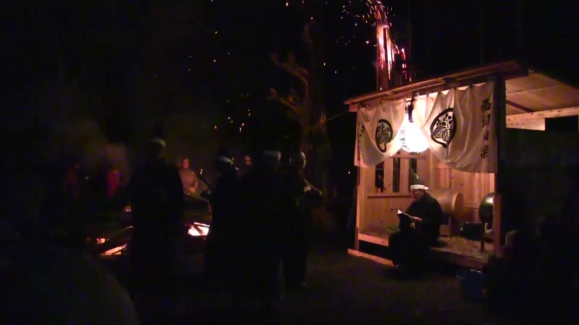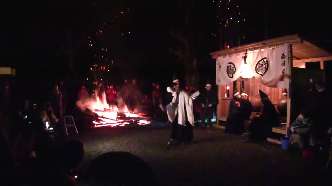 次の「舟渡し」に使う灯となる、庭火から抜き出したほだ(薪)を恵方に向けて煽る。