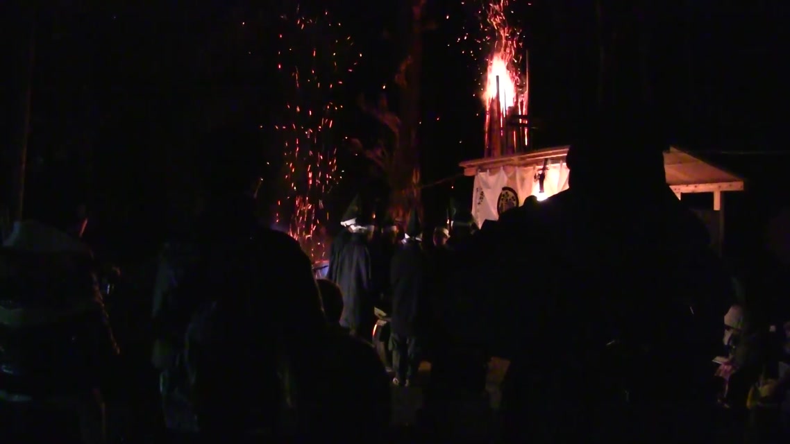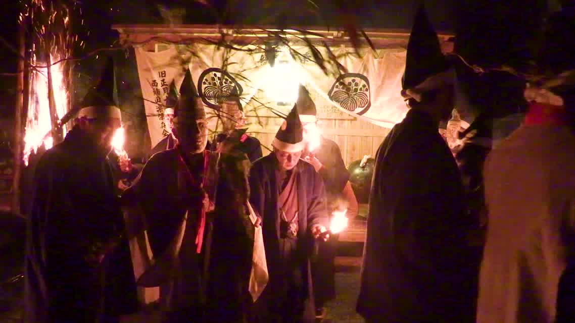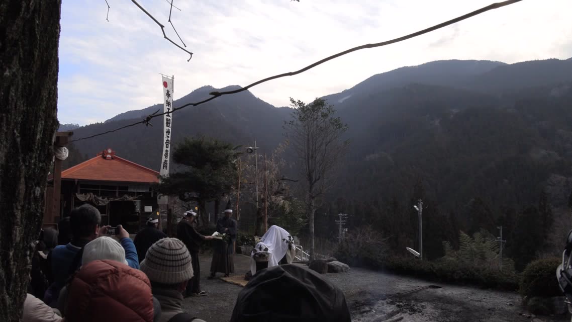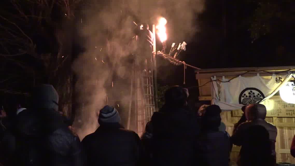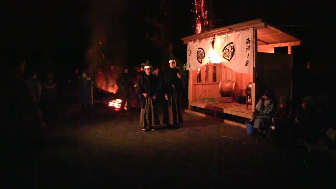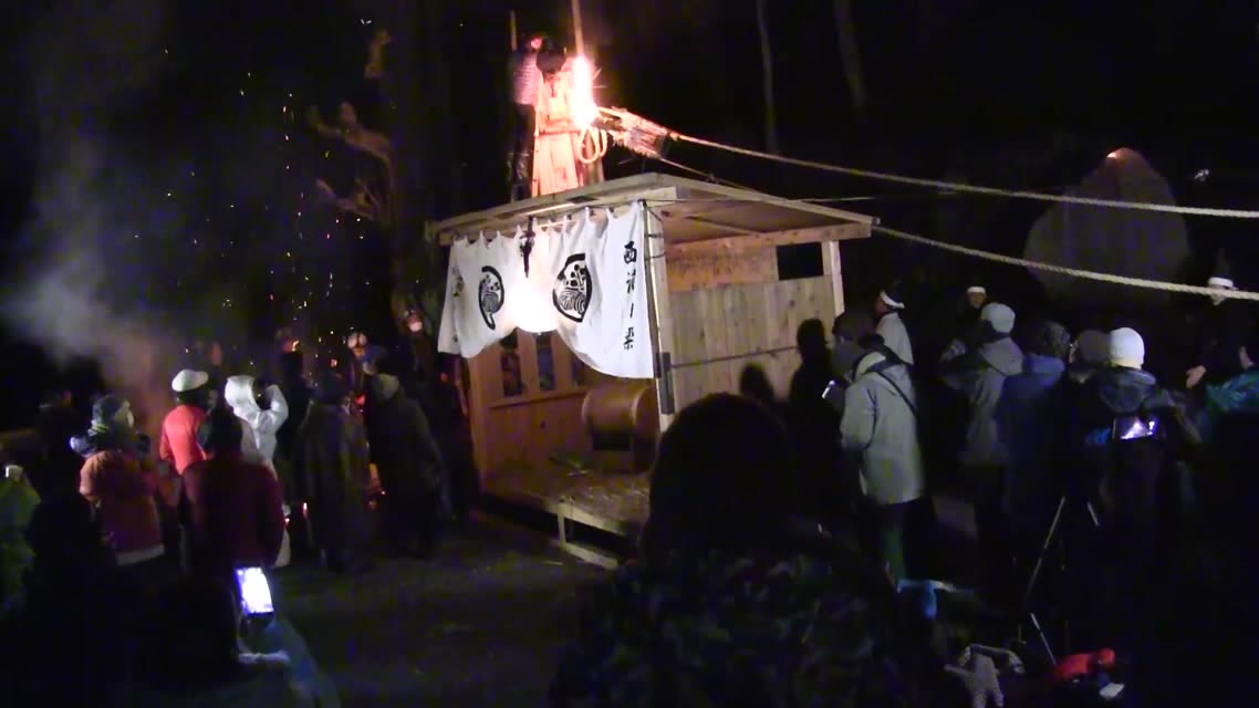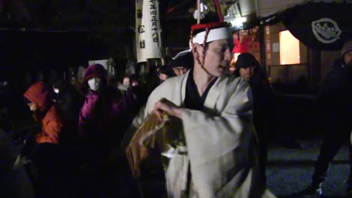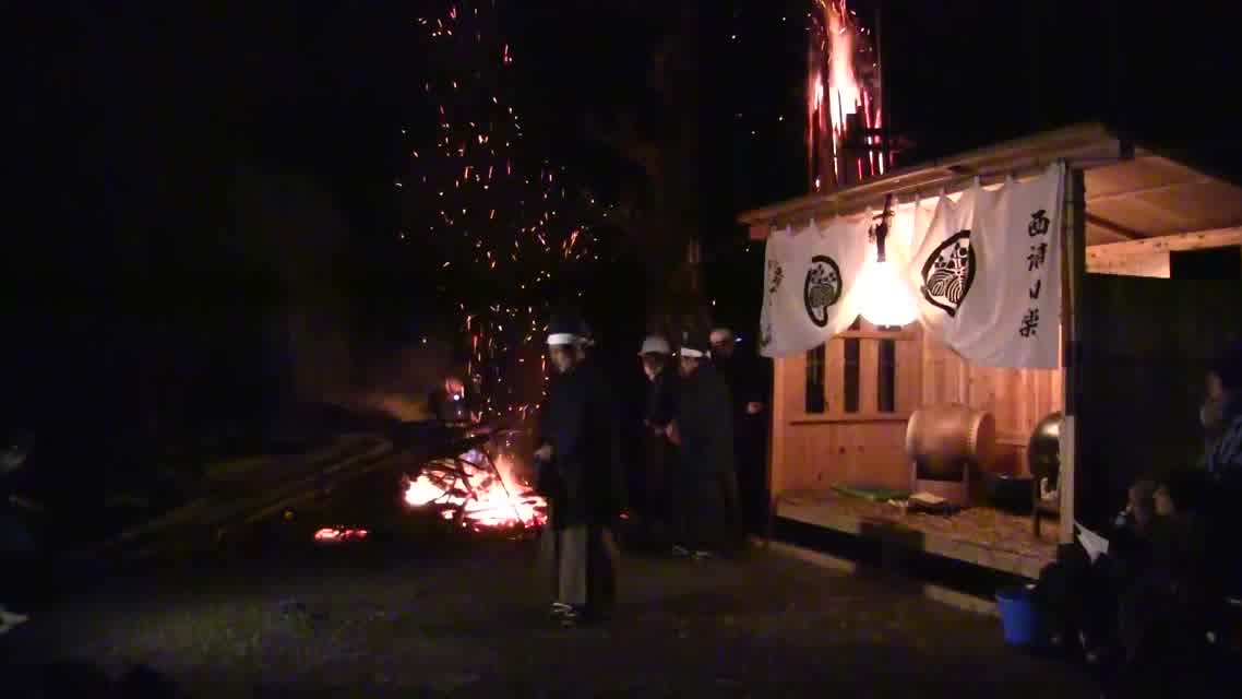 次の「舟渡し」に使う灯となる、庭火から抜き出したほだ(薪)を恵方に向けて煽る。