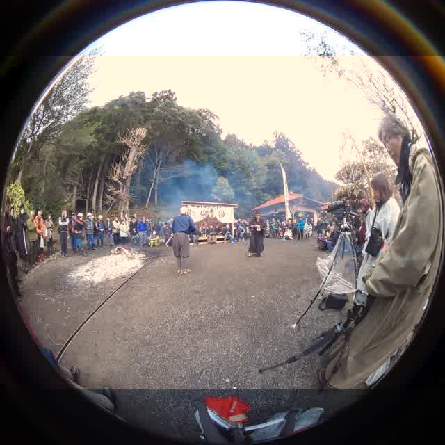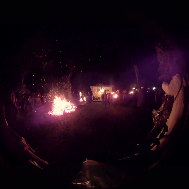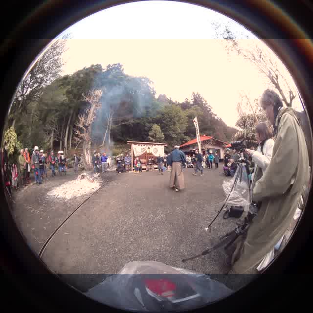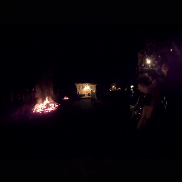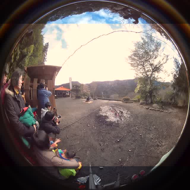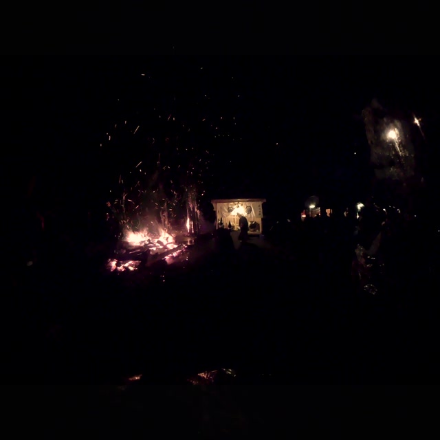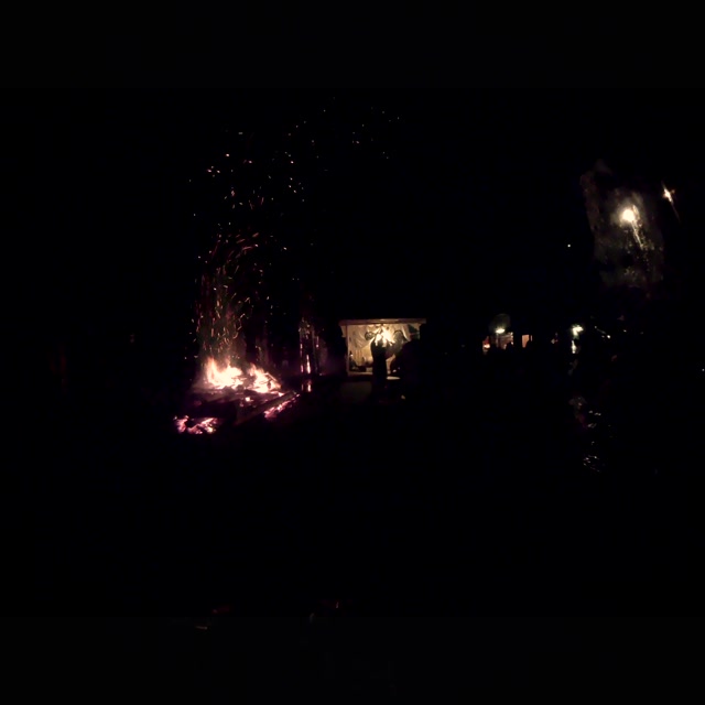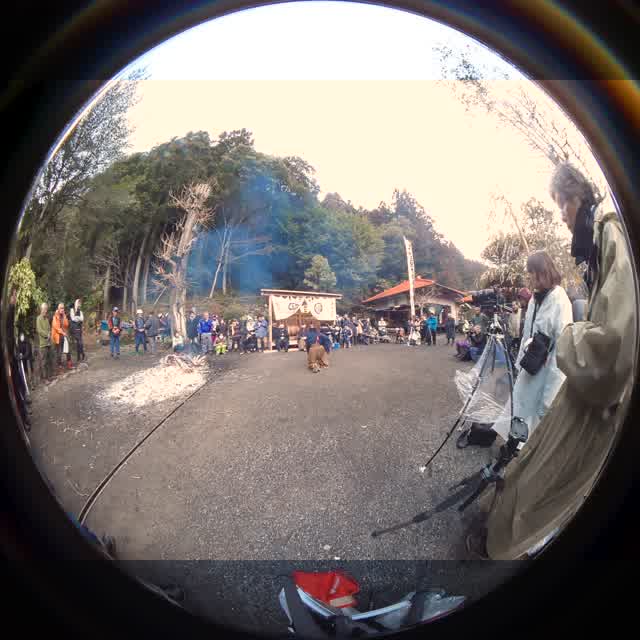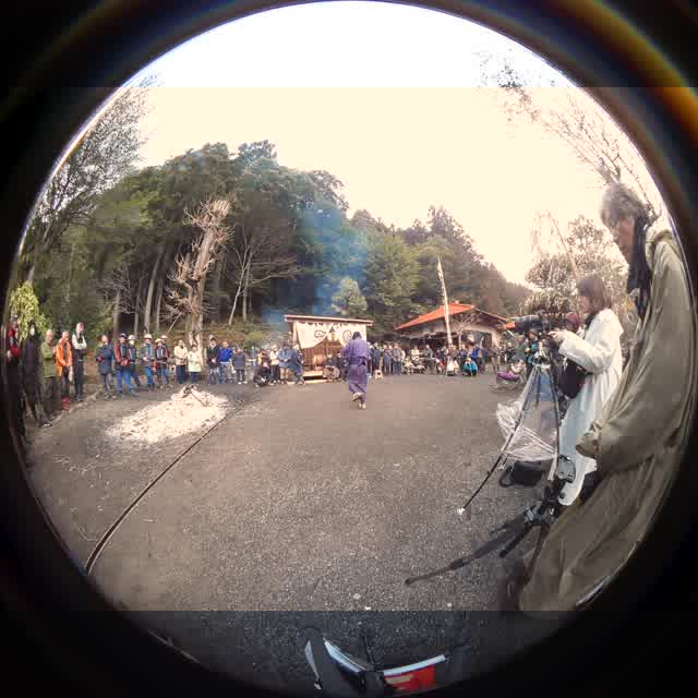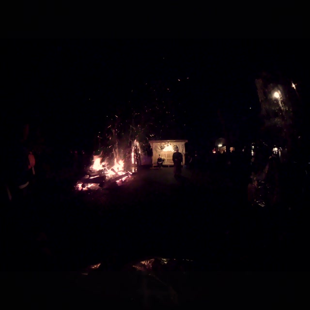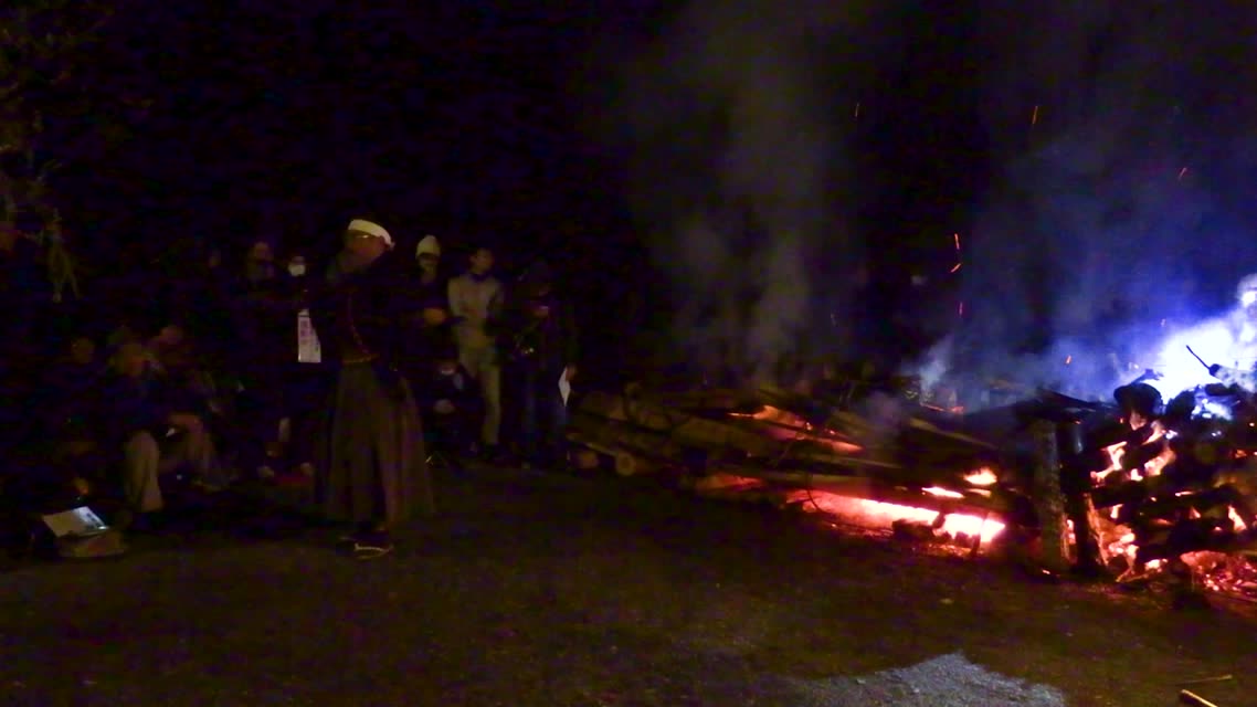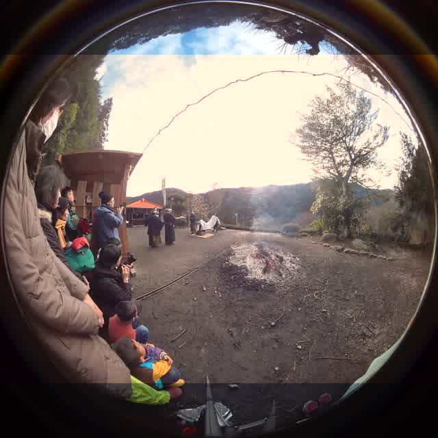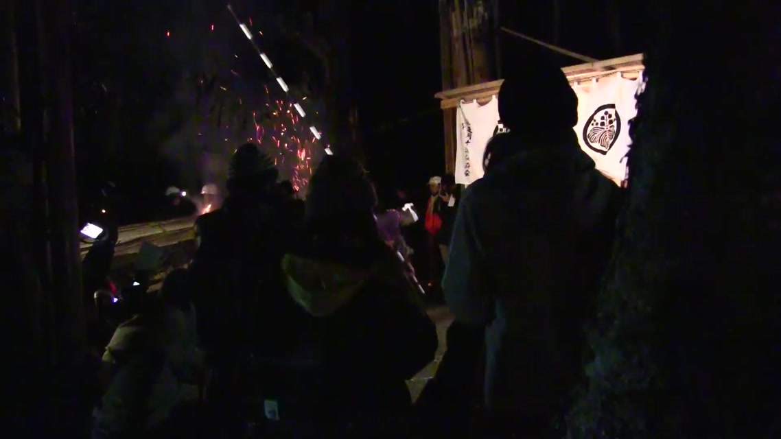次の「舟渡し」に使う灯となる、庭火から抜き出したほだ(薪)を恵方に向けて煽る。