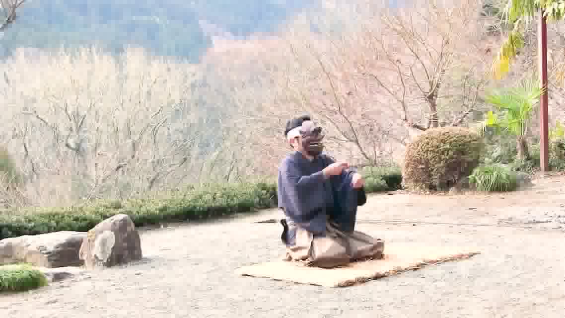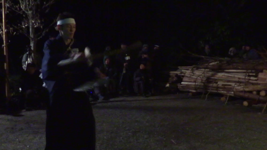 舞庭の空中にいる悪霊を祓う舞。剣を持って5周してから「へんばい」を踏む。