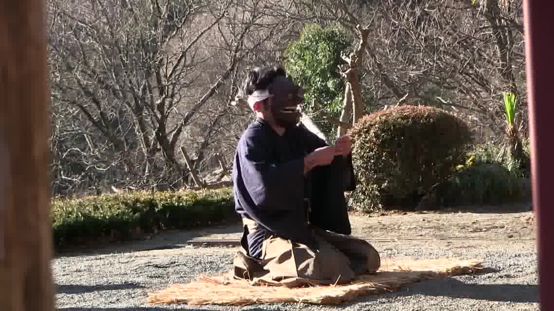能楽の「高砂」の謡にあわせて、赤い鬼面が舞う。