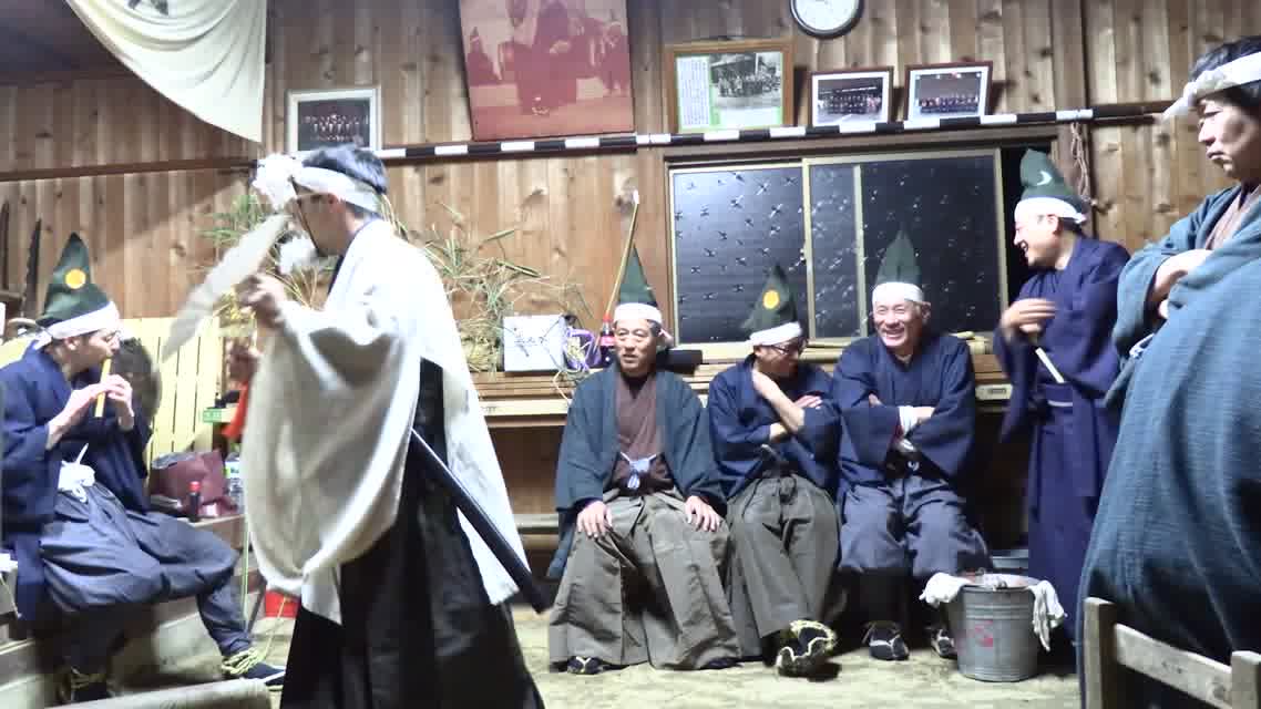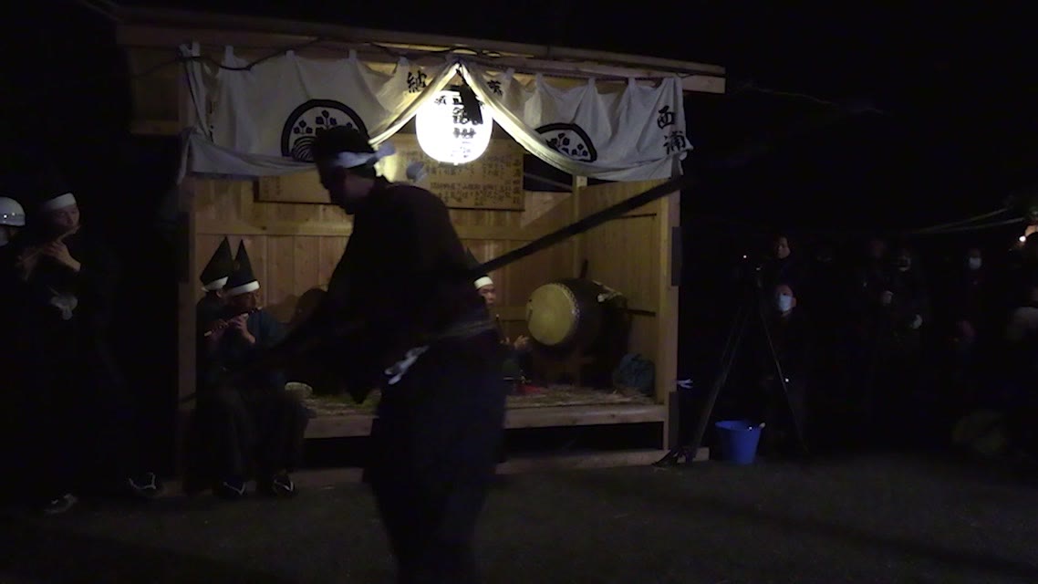 つるぎの返しの舞(先の演目を面白おかしく逆に演ずることで、先の本物さを強調する舞とされる)。